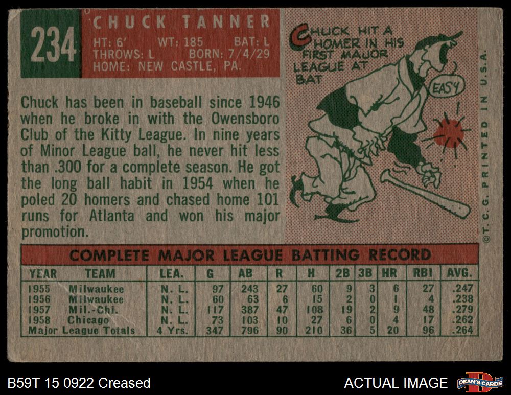 1959 Topps #234 Chuck Tanner 2 - GOOD