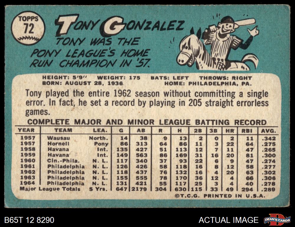 1965 Topps #72 Tony Gonzalez 1.5 - FAIR