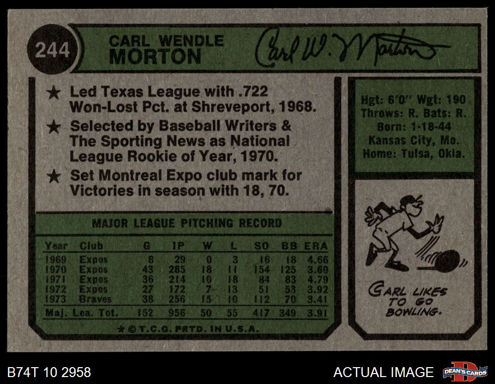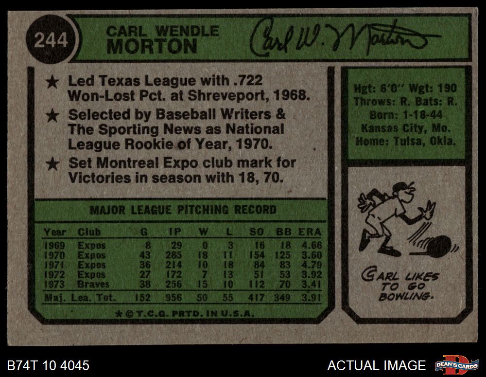 1974 Topps #244 Carl Morton 4 - VG/EX