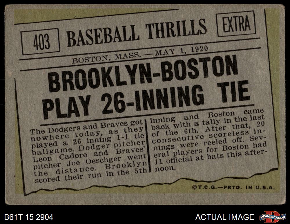 Brooklyn & Boston Play 26 Inning Tie