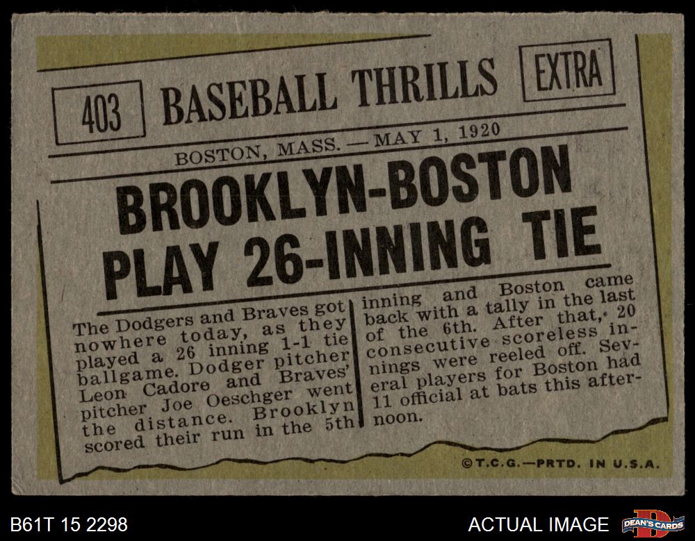 Brooklyn & Boston Play 26 Inning Tie