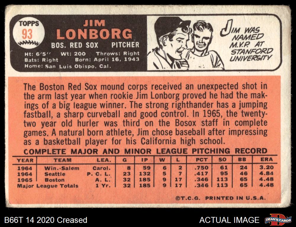 1966 Topps #93 Jim Lonborg 1 - POOR