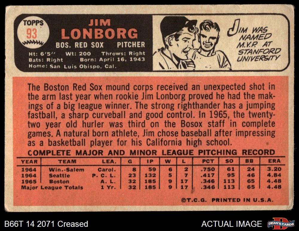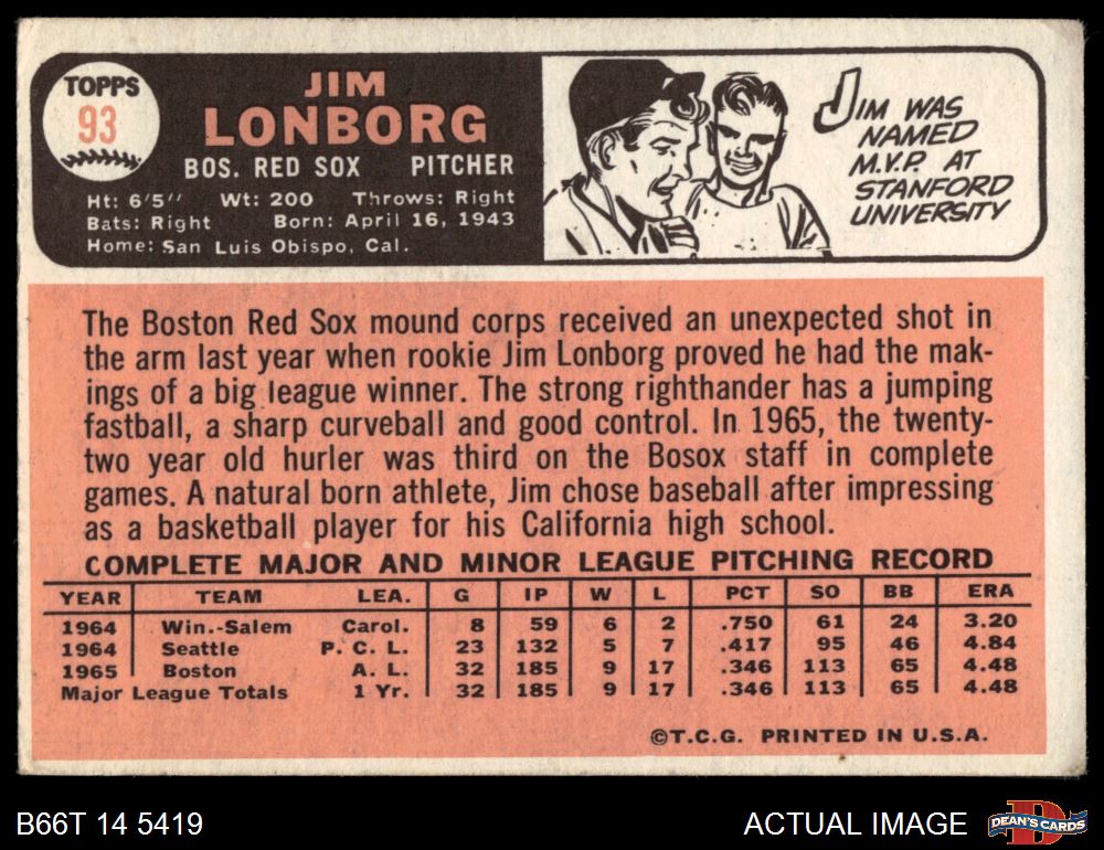 1966 Topps #93 Jim Lonborg 1.5 - FAIR