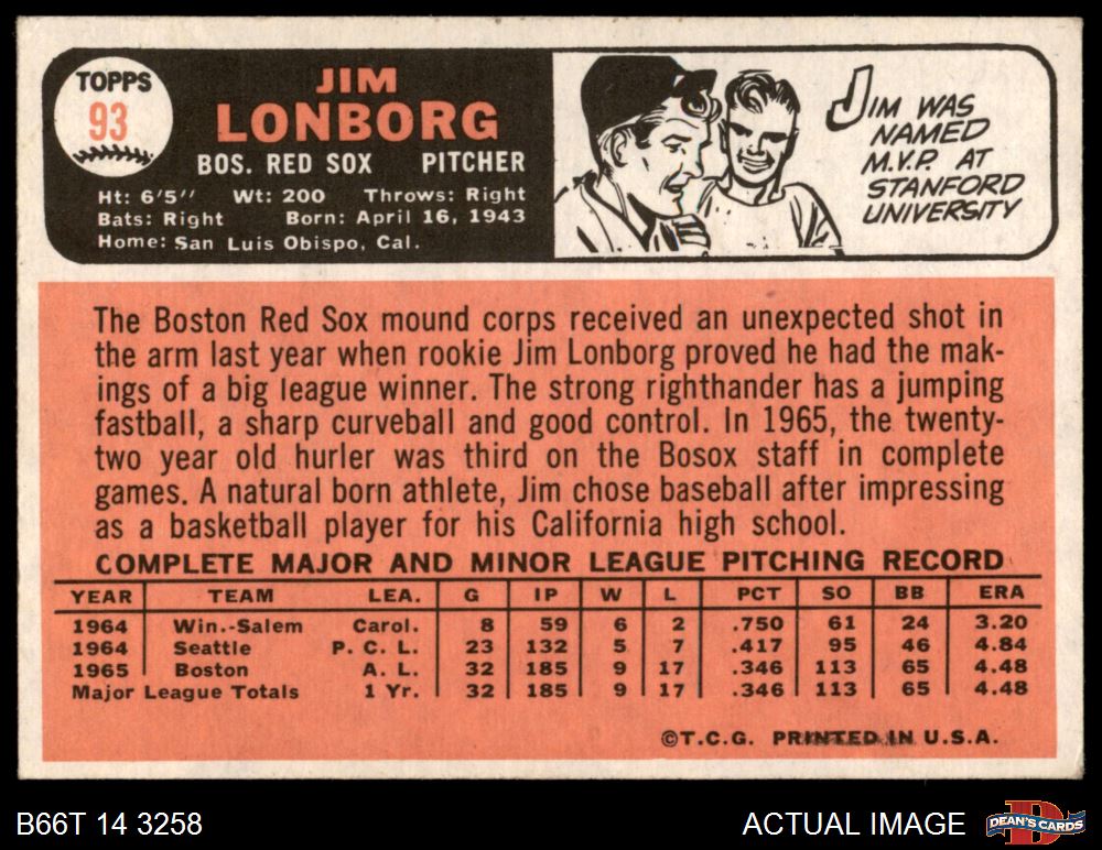 1966 Topps #93 Jim Lonborg 3 - VG