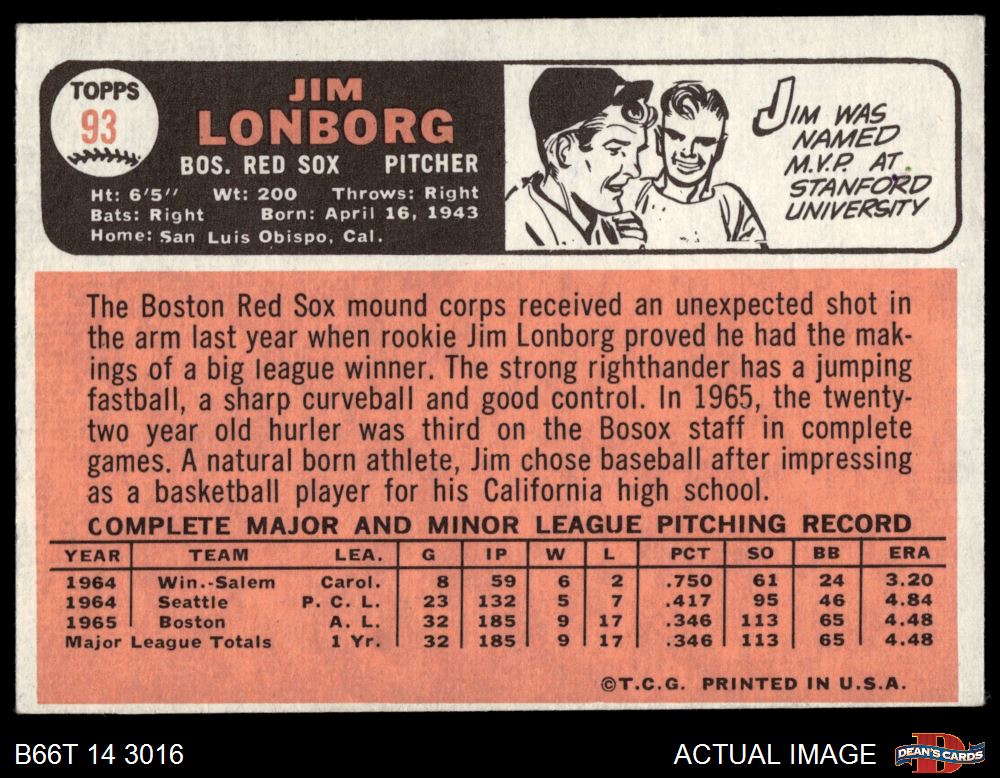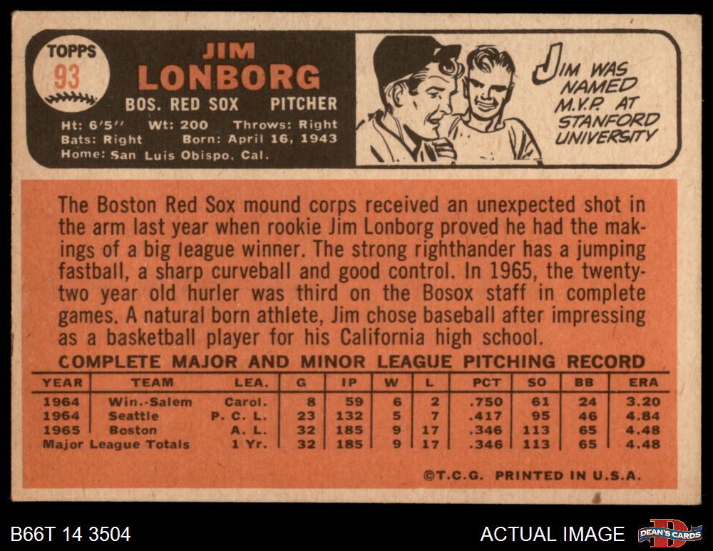 1966 Topps #93 Jim Lonborg 4 - VG/EX