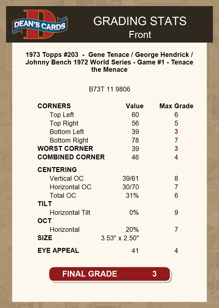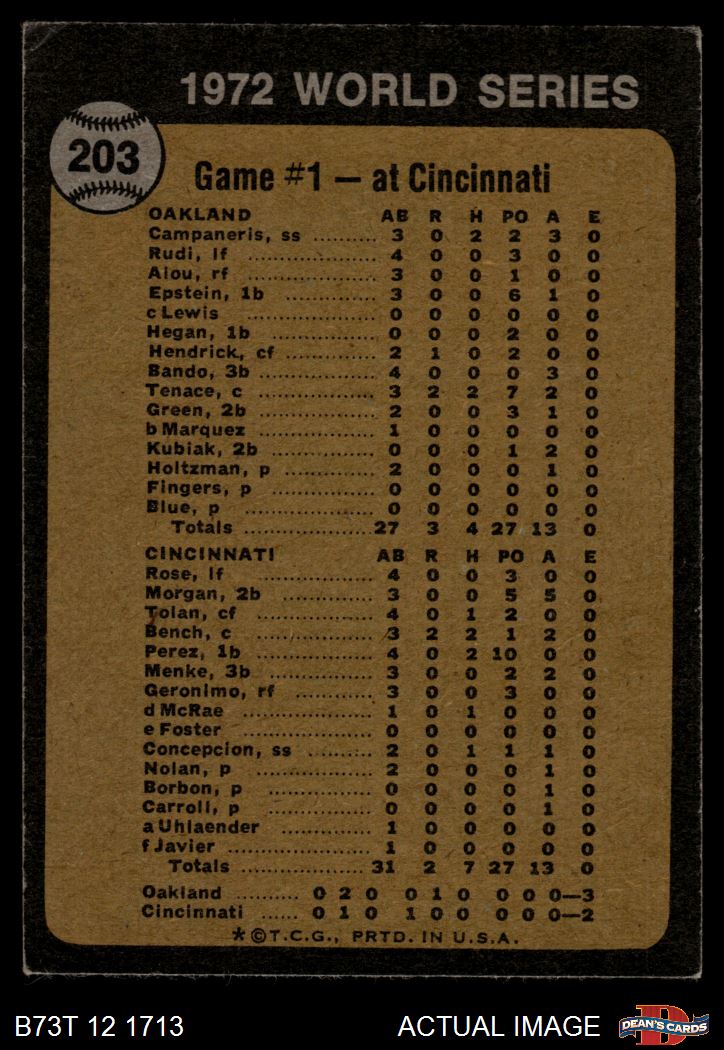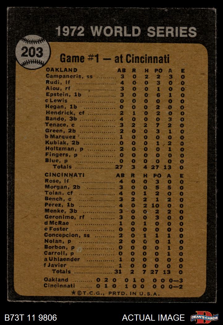 1973 Topps #203 - Gene Tenace / George Hendrick / Johnny Bench 1972 World Series - Game #1 - Tenace the Menace 3 - VG