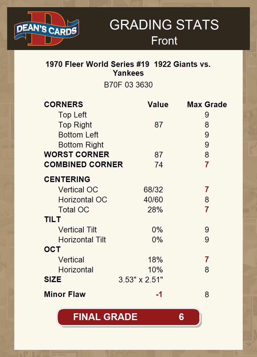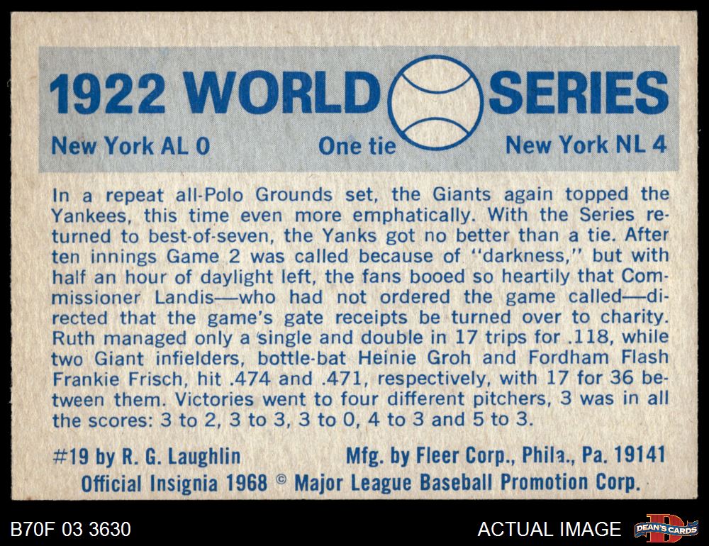 1970 Fleer World Series #19 1922 Giants vs. Yankees 6 - EX/MT
