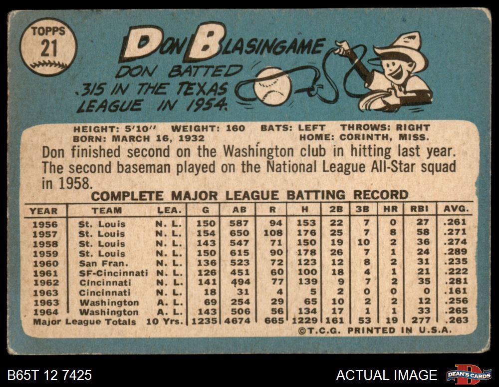 1965 Topps #21 Don Blasingame 1.5 - FAIR
