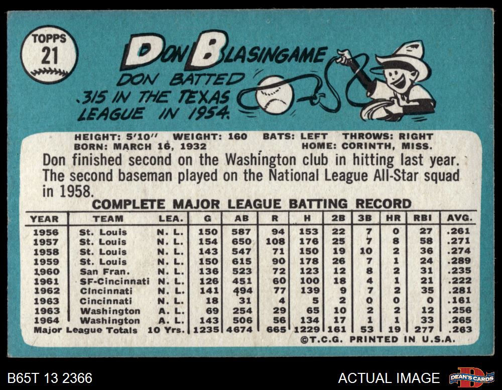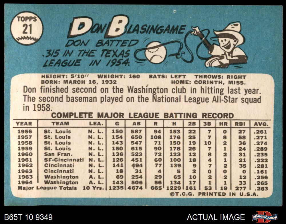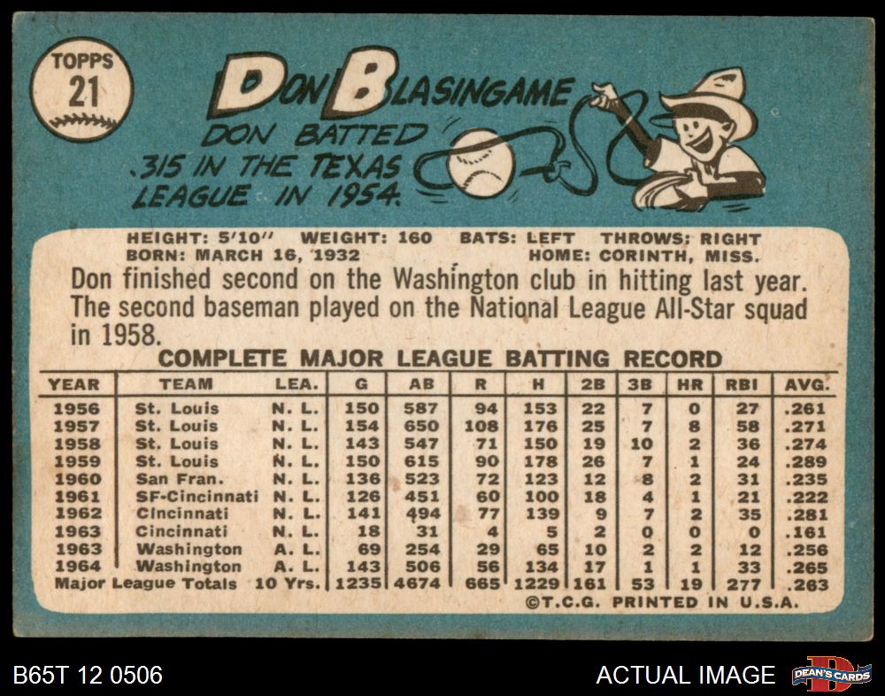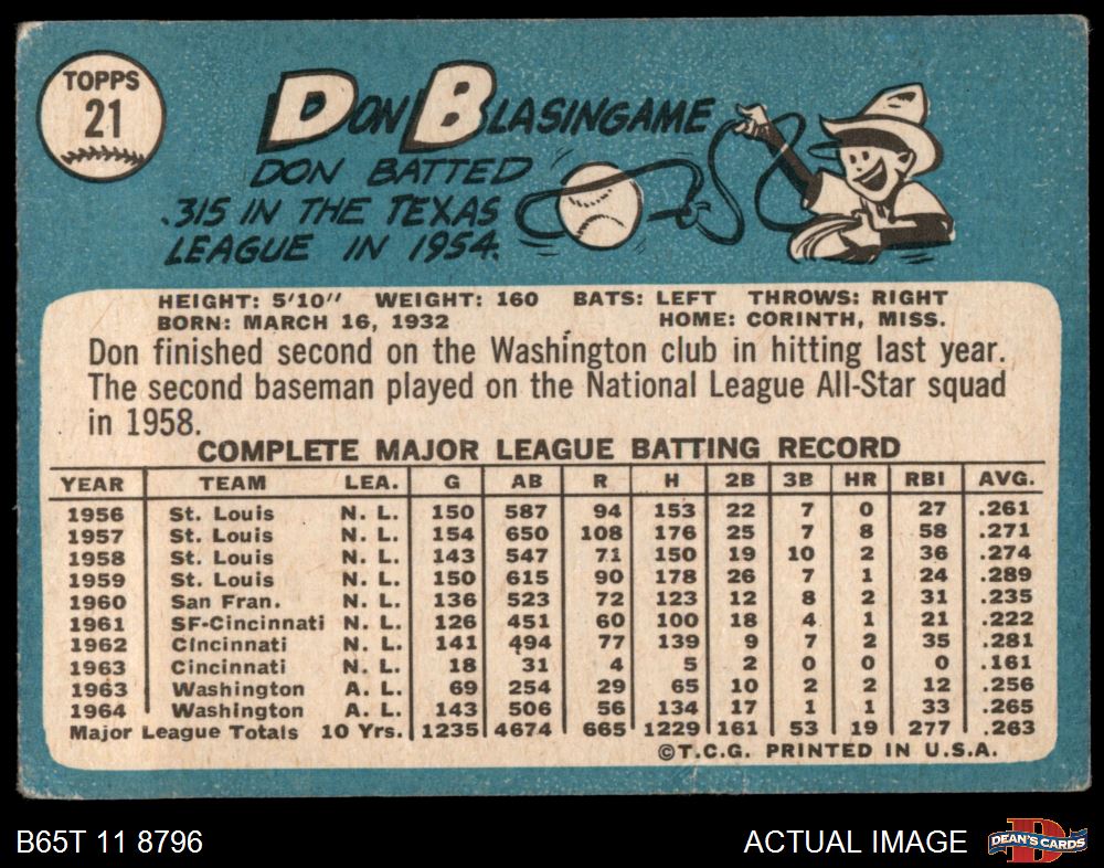 1965 Topps #21 Don Blasingame