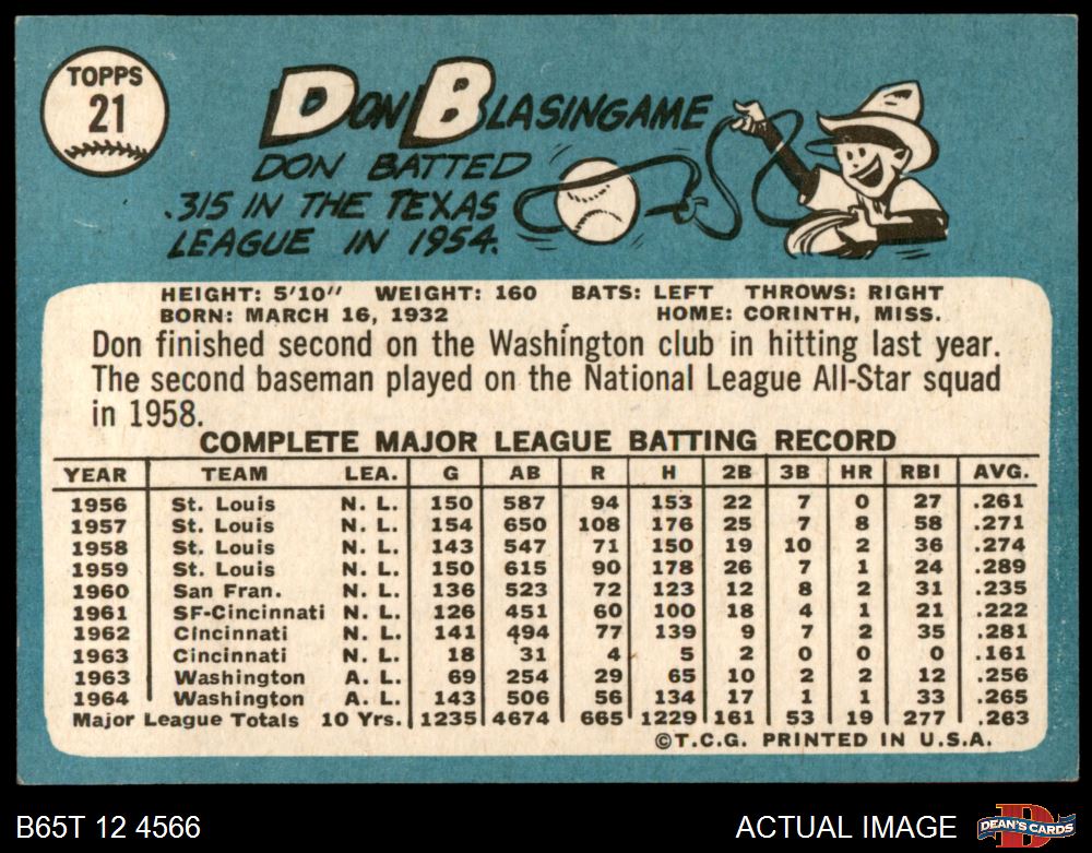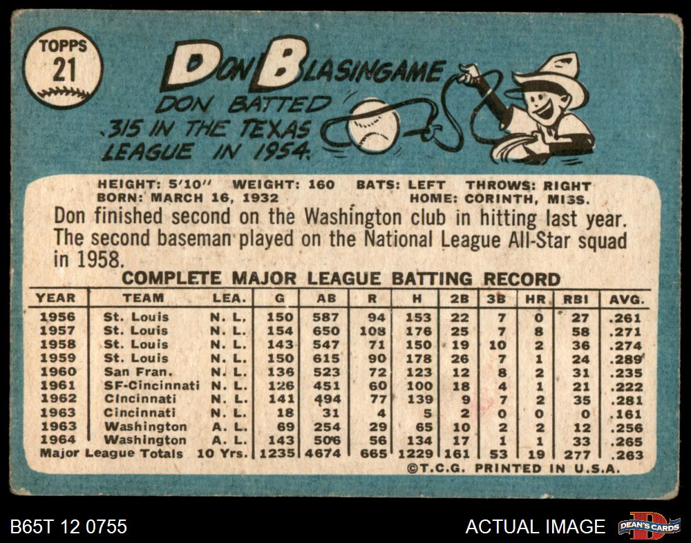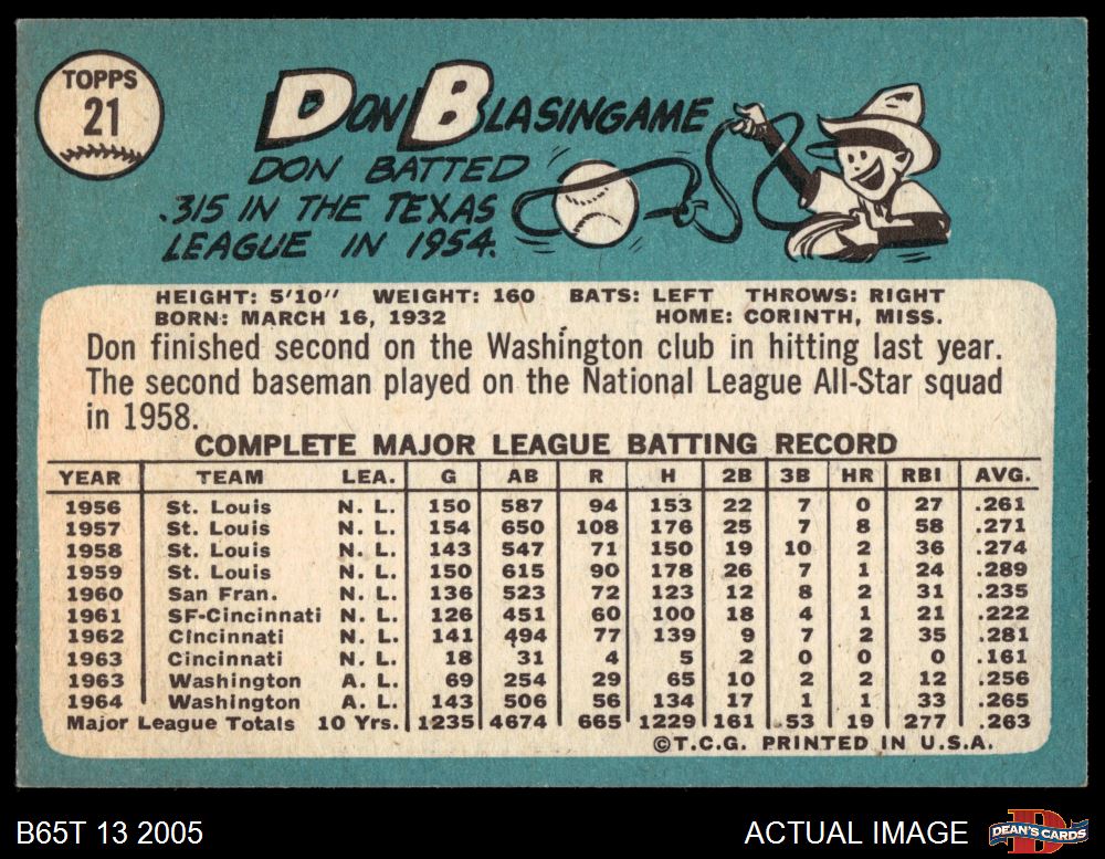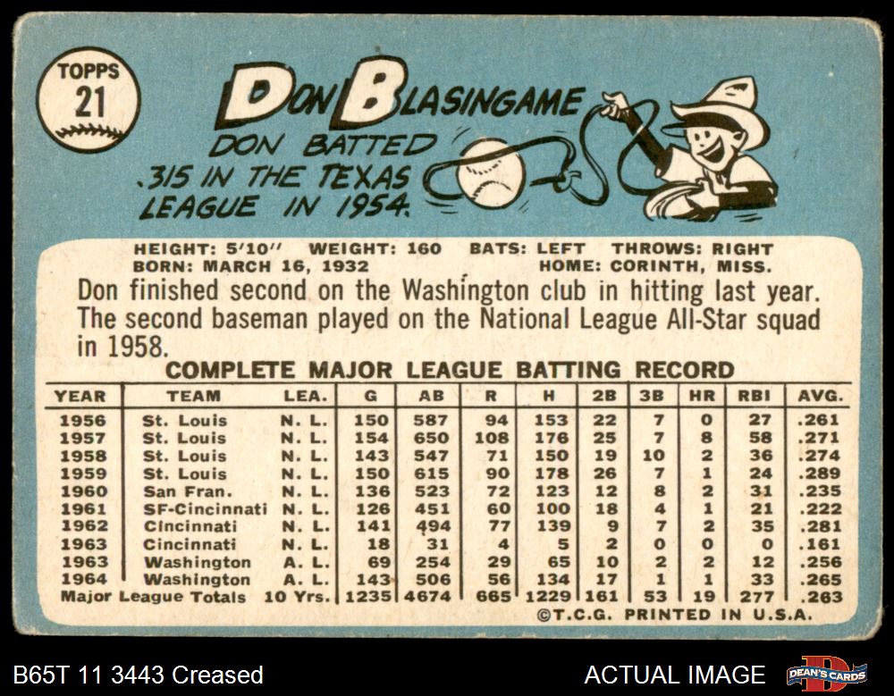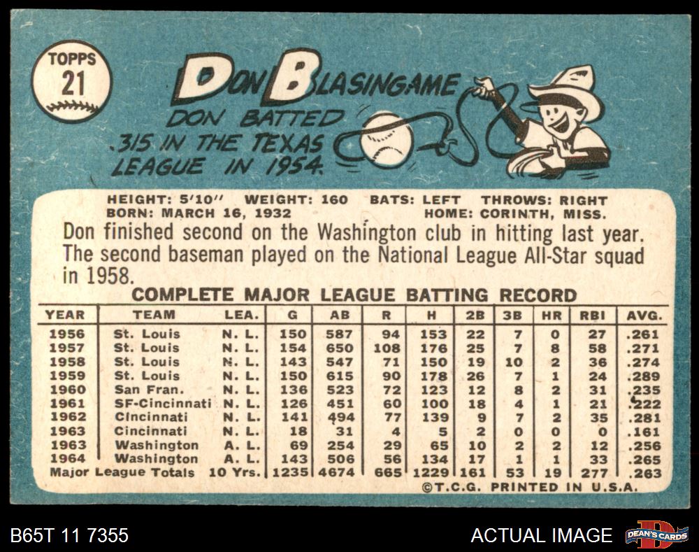 1965 Topps #21 Don Blasingame