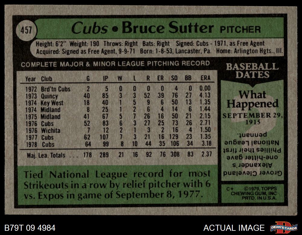 1979 Topps #457 Bruce Sutter 3 - VG