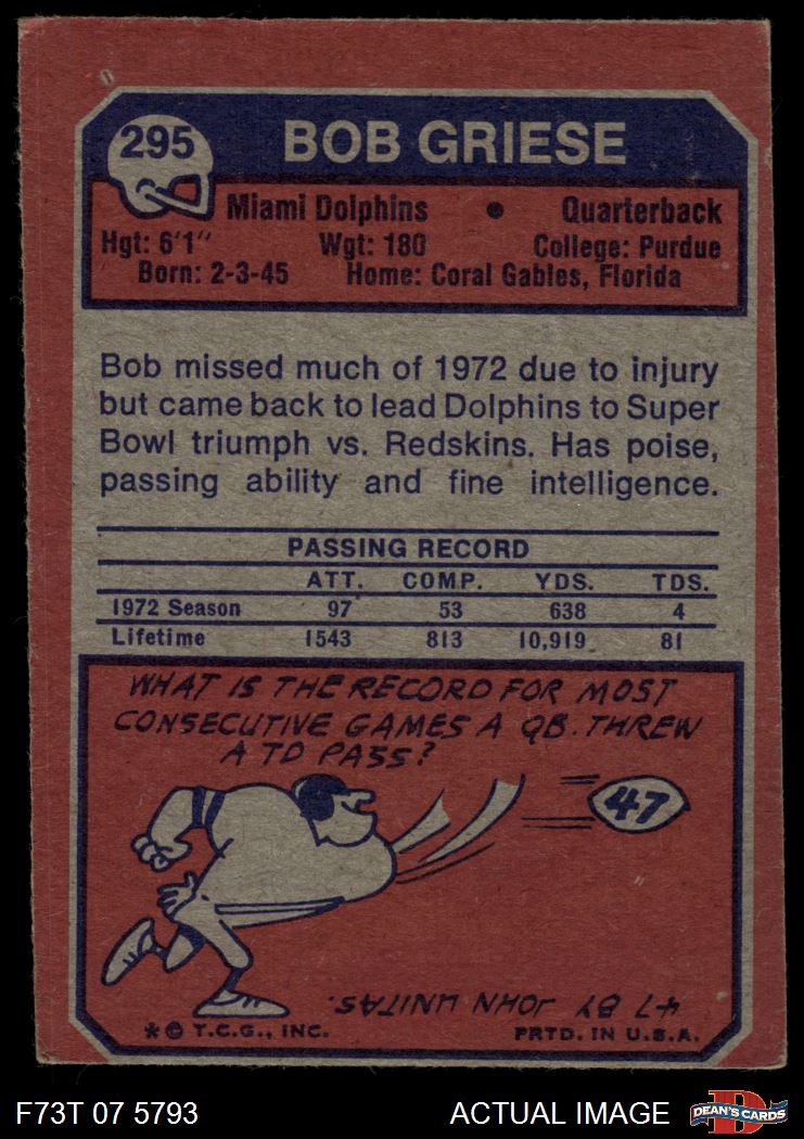 1973 Topps #295 Bob Griese 1.5 - FAIR