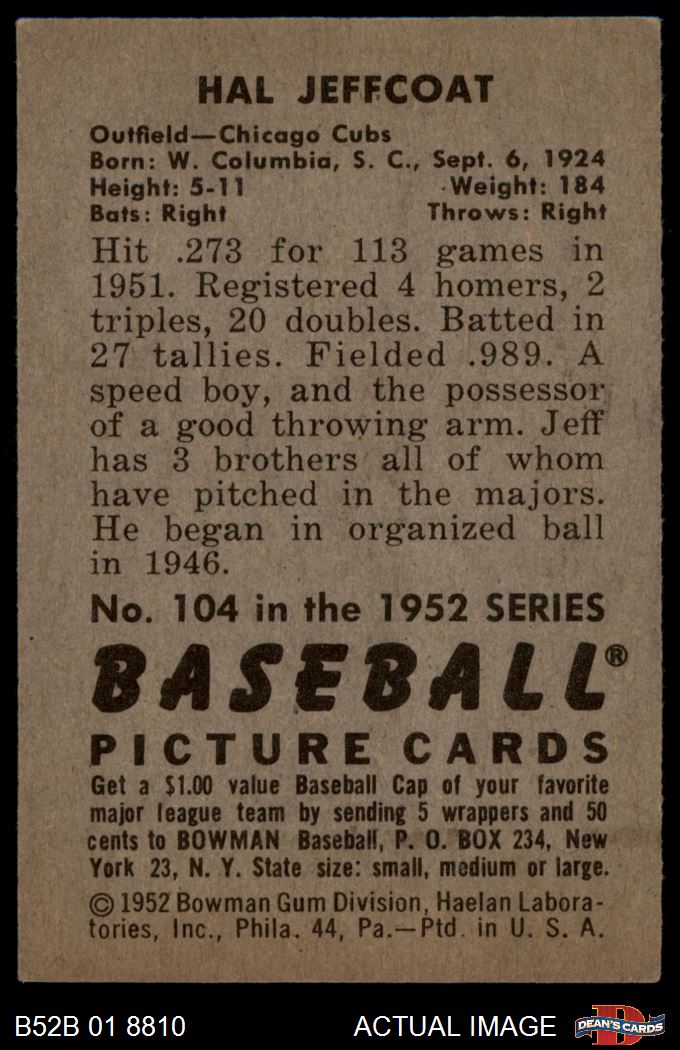 1952 Bowman Baseball Cards (843 available)1952 Bowman Cubs (100 available)