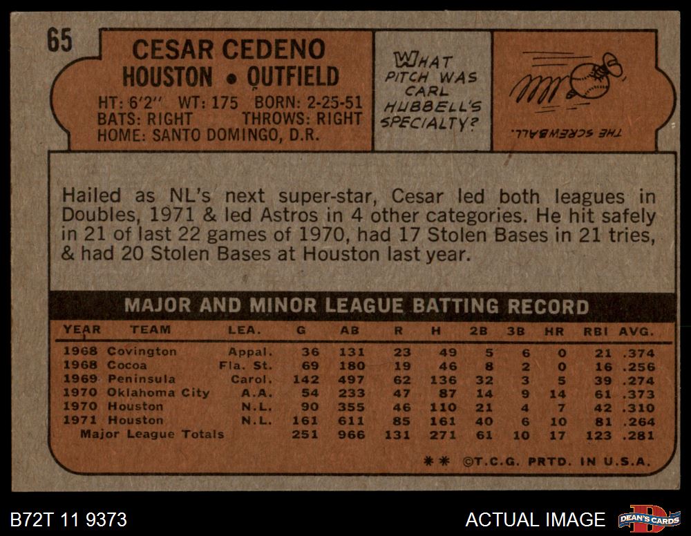 1972 Topps #65 Cesar Cedeno 5 - EX
