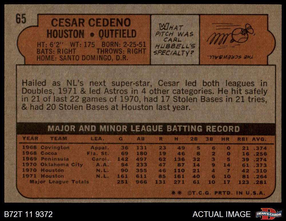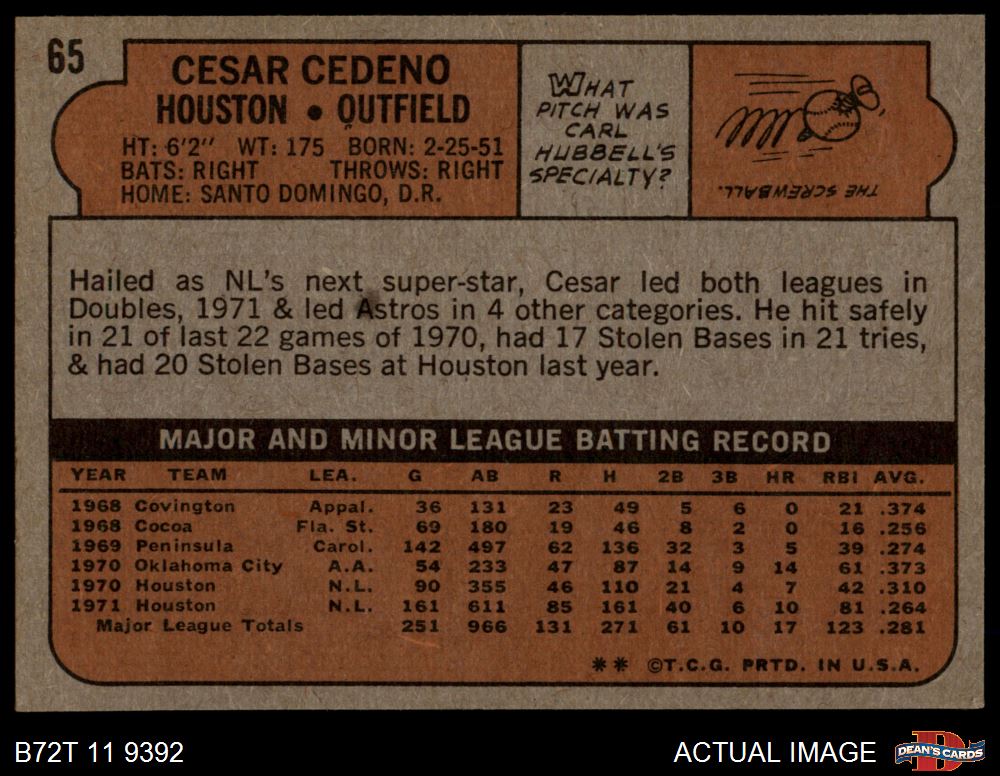 1972 Topps #65 Cesar Cedeno 6 - EX/MT