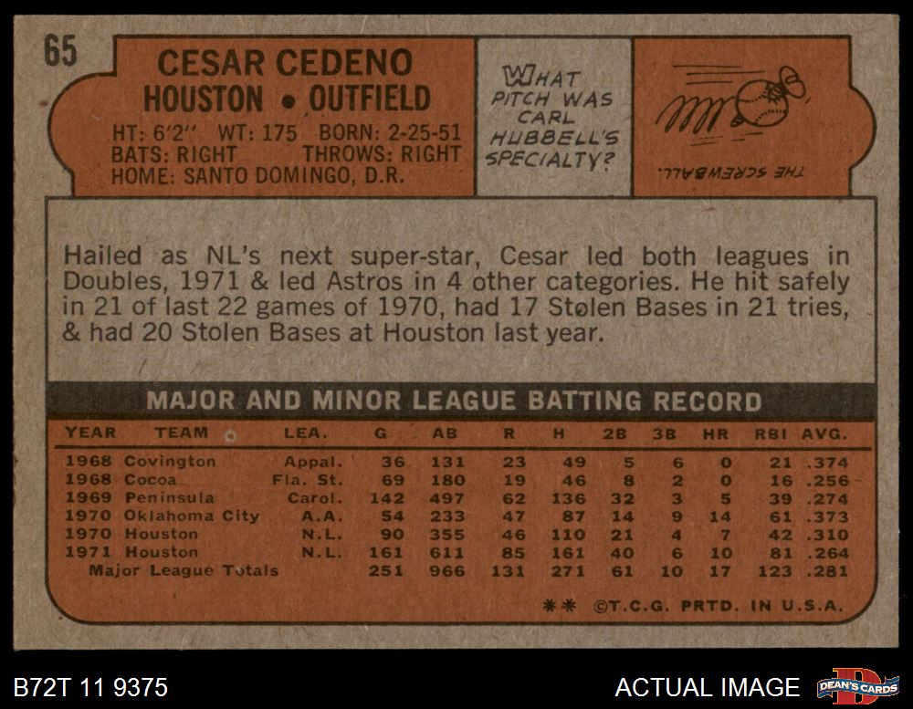 1972 Topps #65 Cesar Cedeno 7 - NM