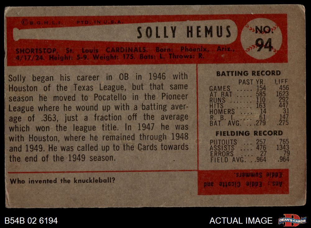 1954 Bowman #94 SS Solly Hemus 2 - GOOD