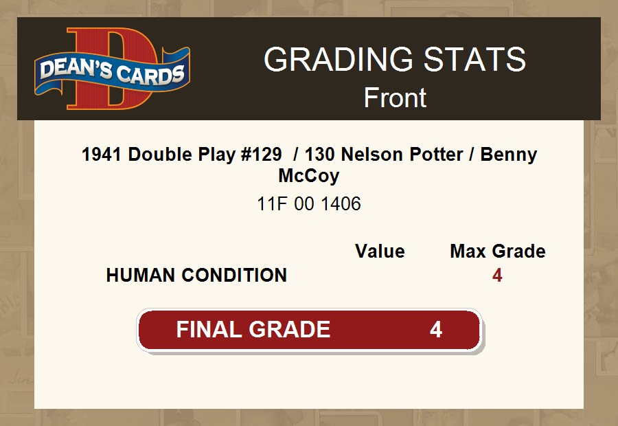 1941 Double Play #129 / 130 Nelson Potter / Benny McCoy PSA 4 - VG/EX