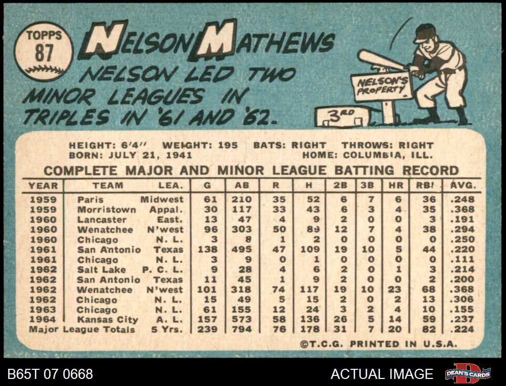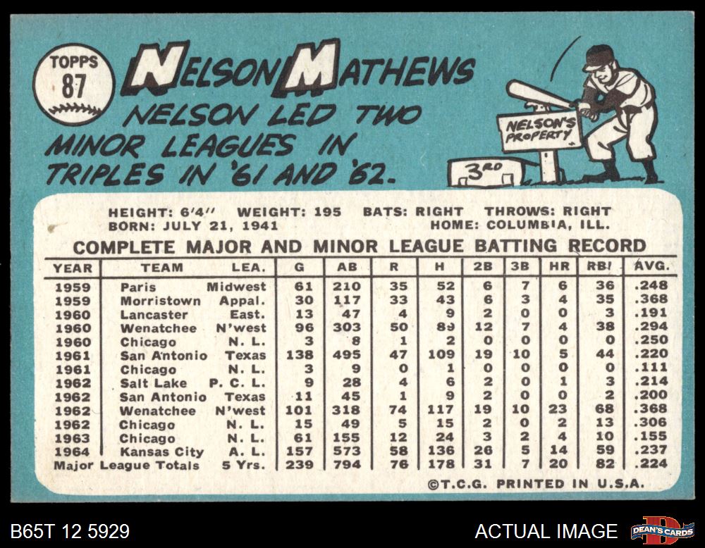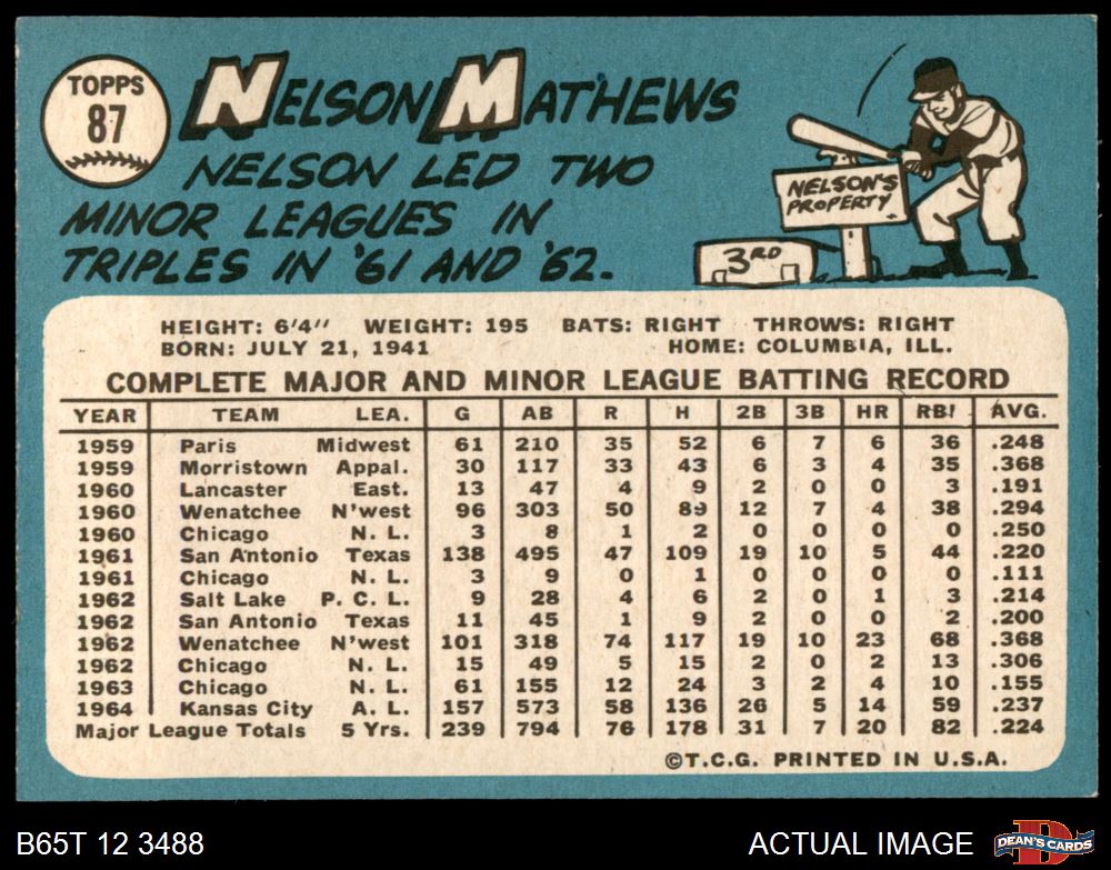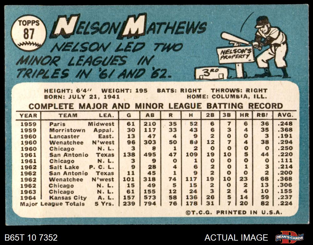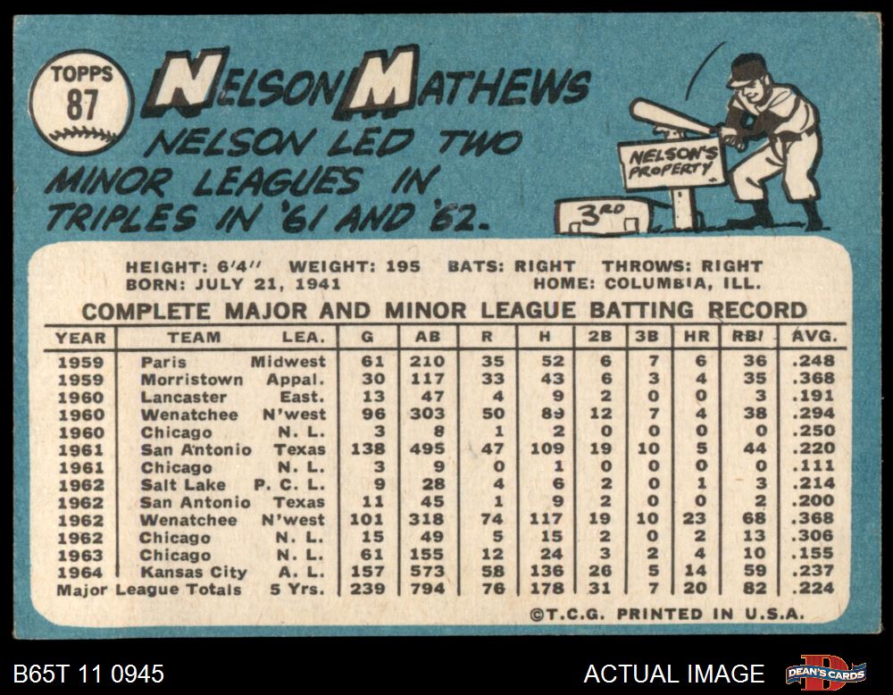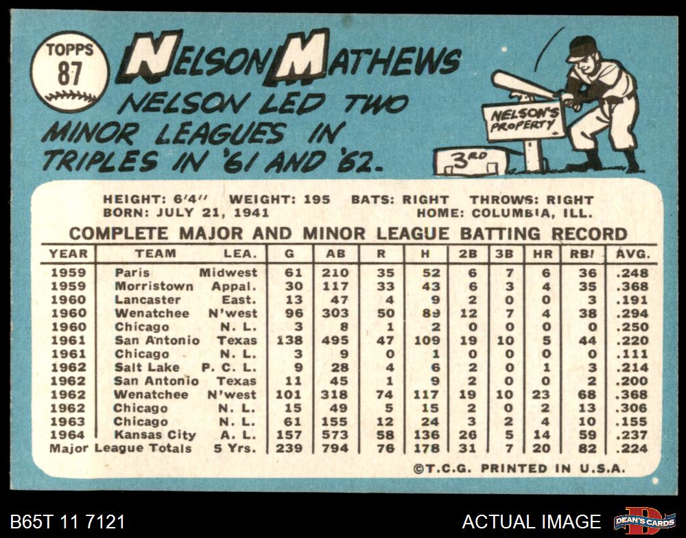 1965 Topps #87 Nelson Mathews