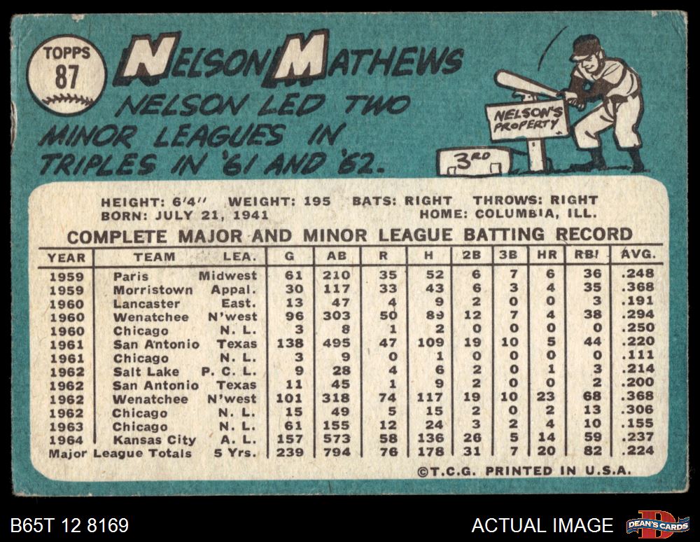 1965 Topps #87 Nelson Mathews 2.5 - GD+