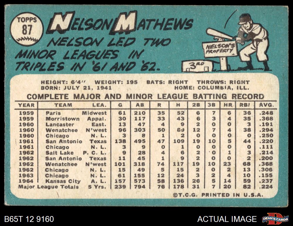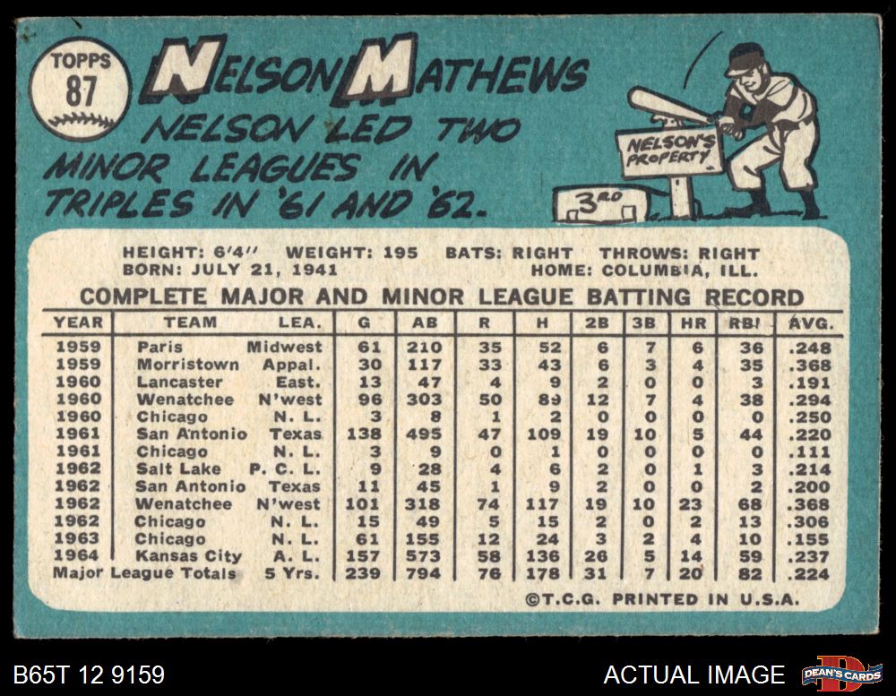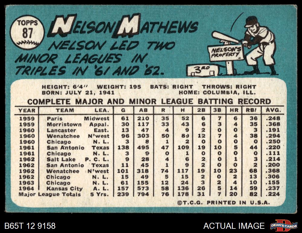 1965 Topps #87 Nelson Mathews 3 - VG