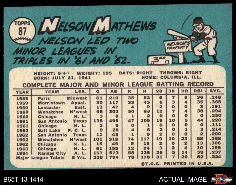 1965 Topps #87 Nelson Mathews 4 - VG/EX