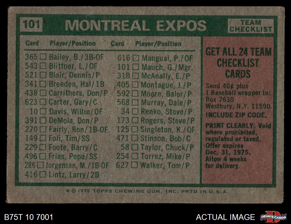 1975 Topps #101  -  Gene Mauch Expos Team Checklist Front Thumbnail