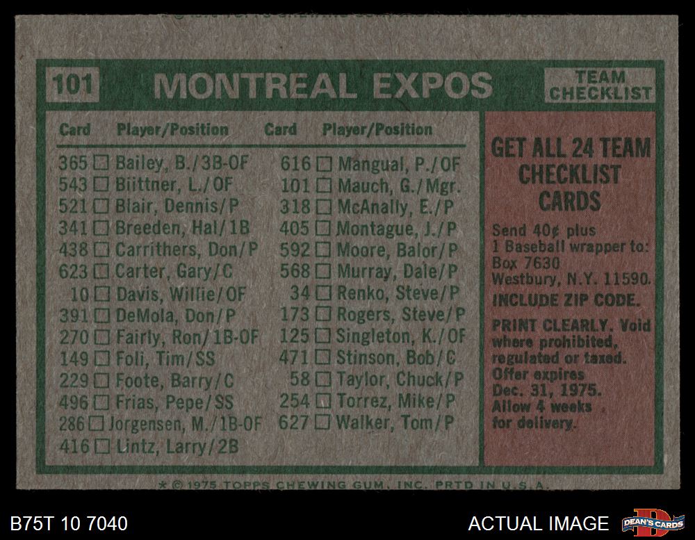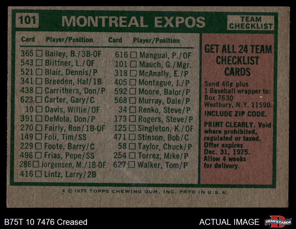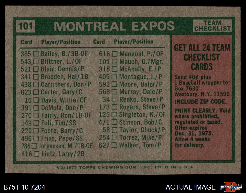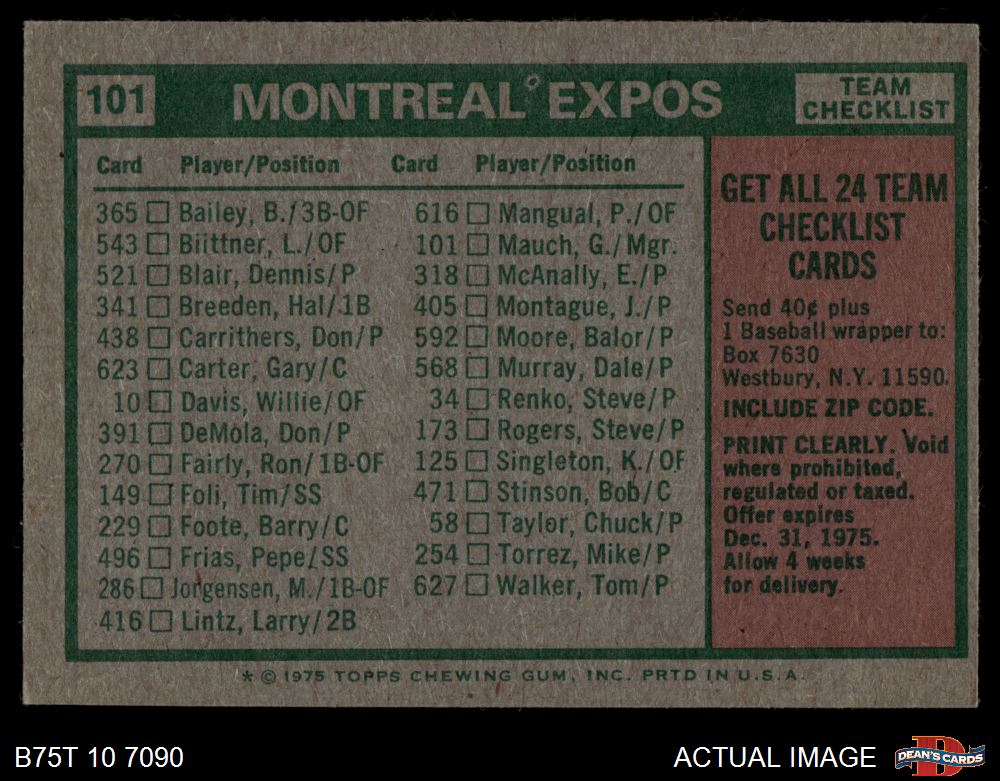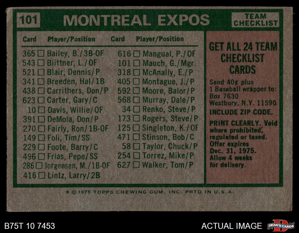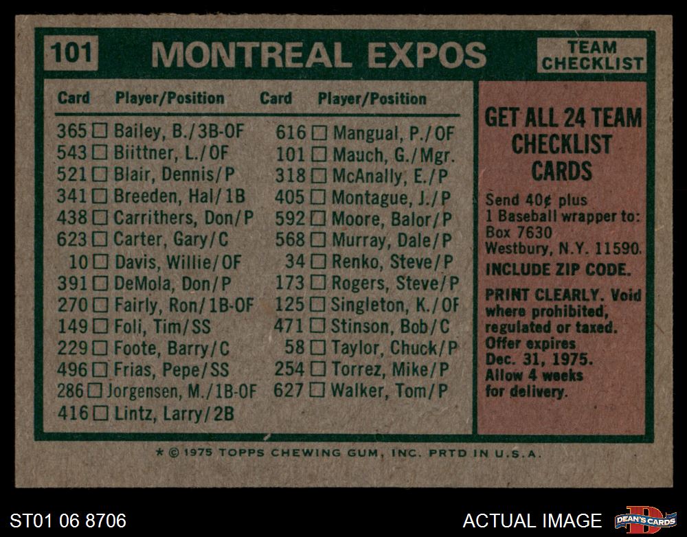 1975 Topps #101 Expos Team Checklist