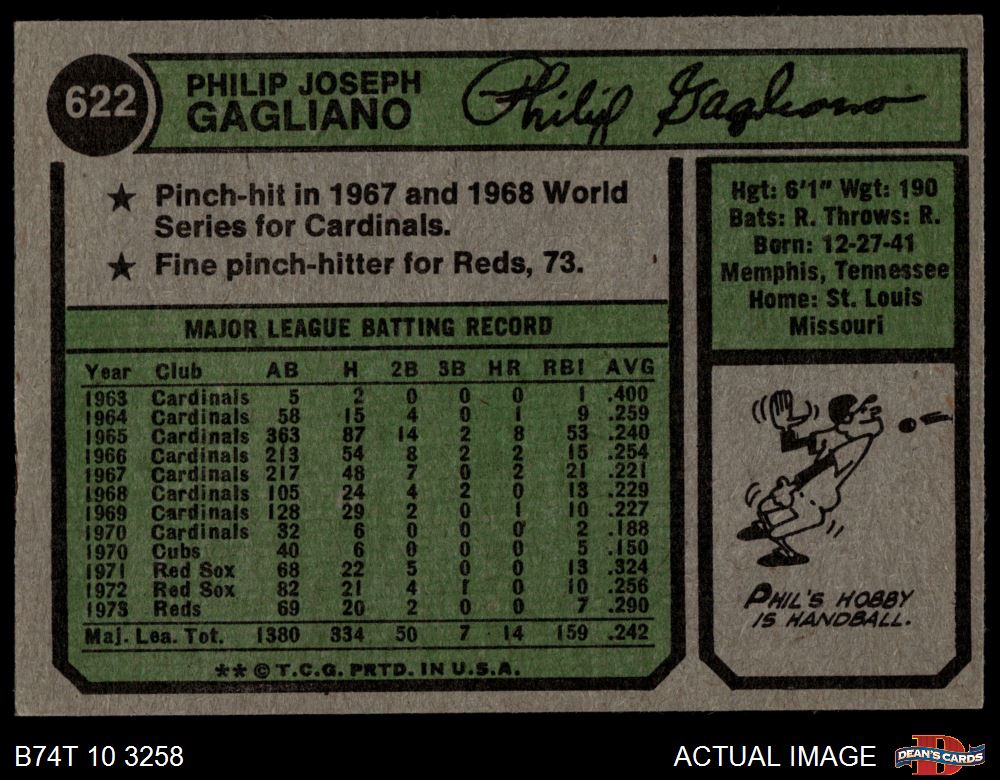 1974 Topps #622 Phil Gagliano 6 - EX/MT