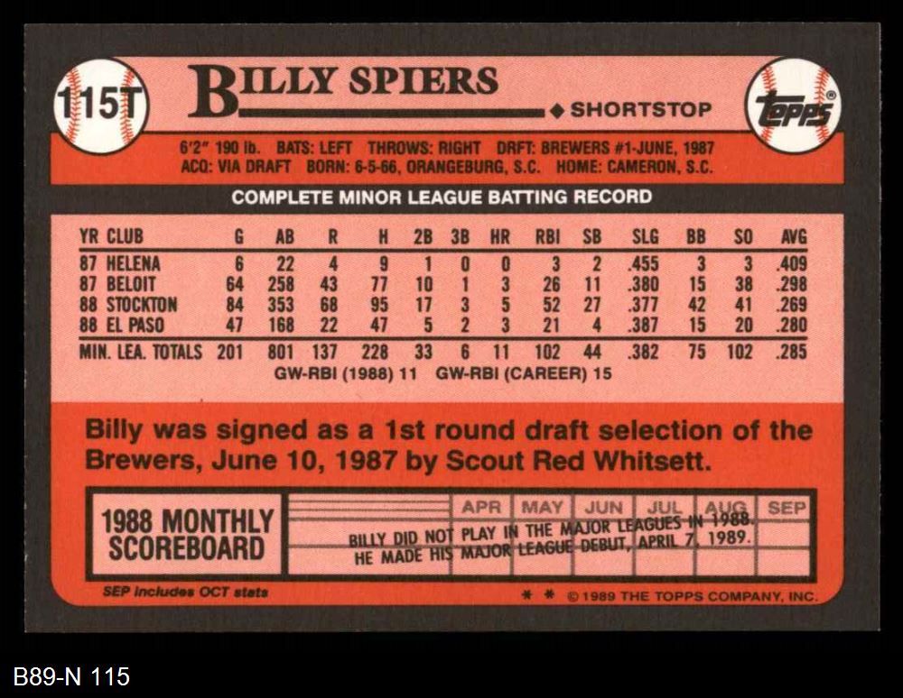 1989 Topps Traded #115 T Billy Spiers