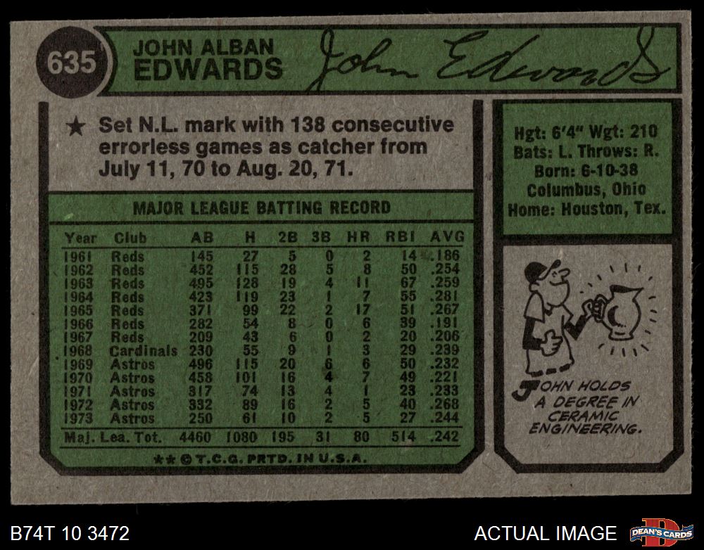 1974 Topps #635 Johnny Edwards 5 - EX