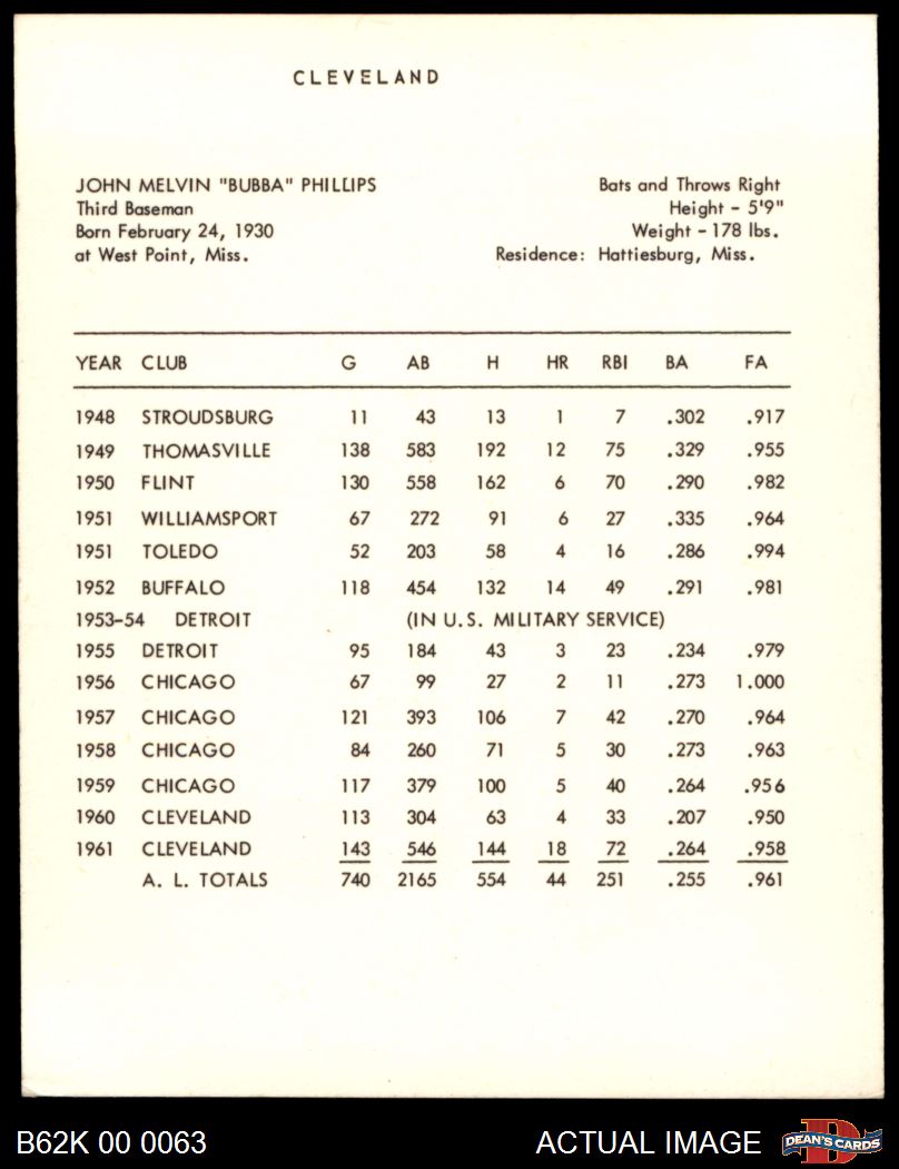 1962 Kahn's Bubba Phillips 4 - VG/EX