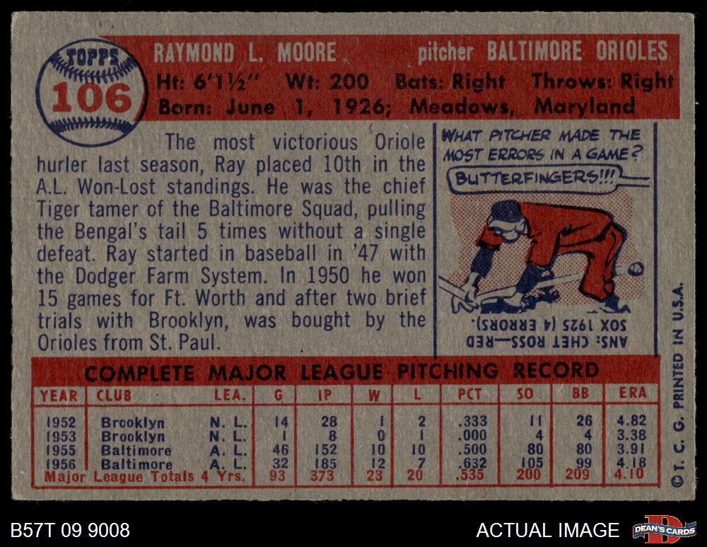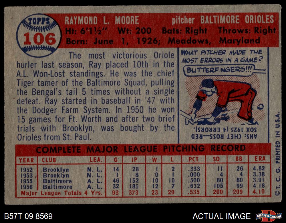1957 Topps #106 Ray Moore