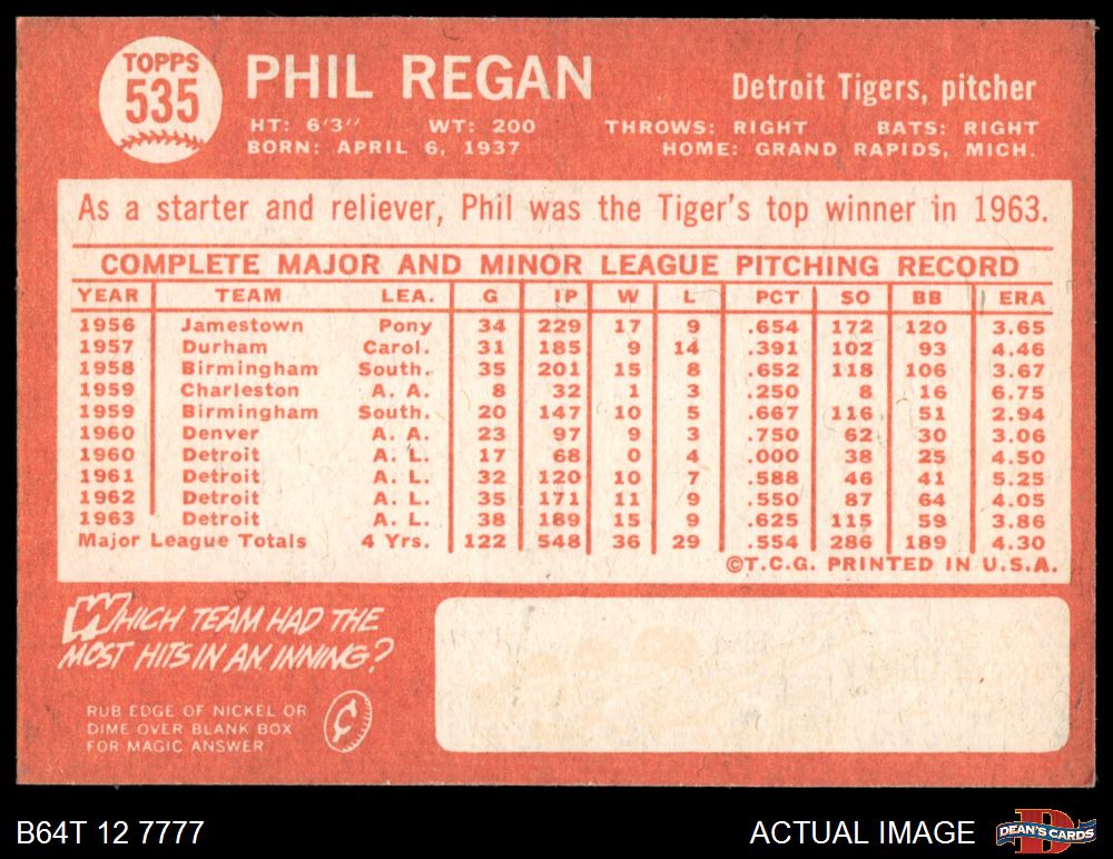 1964 Topps #535 Phil Regan