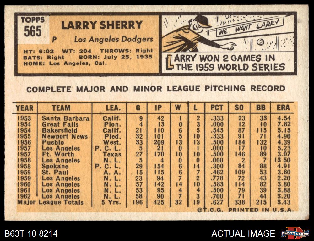 1963 Topps #565 Larry Sherry