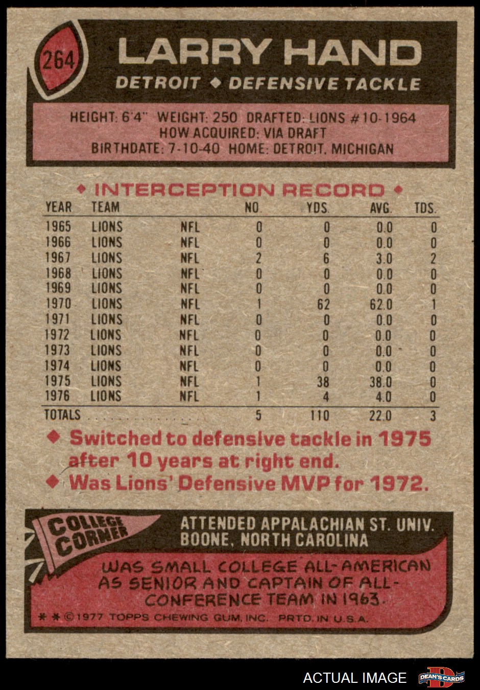 1977 Topps #264 Larry Hand