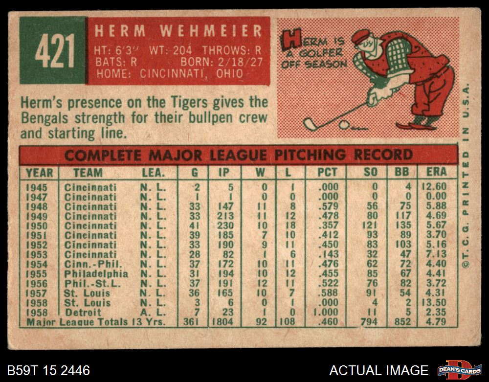 1959 Topps #421 Herm Wehmeier 3 - VG