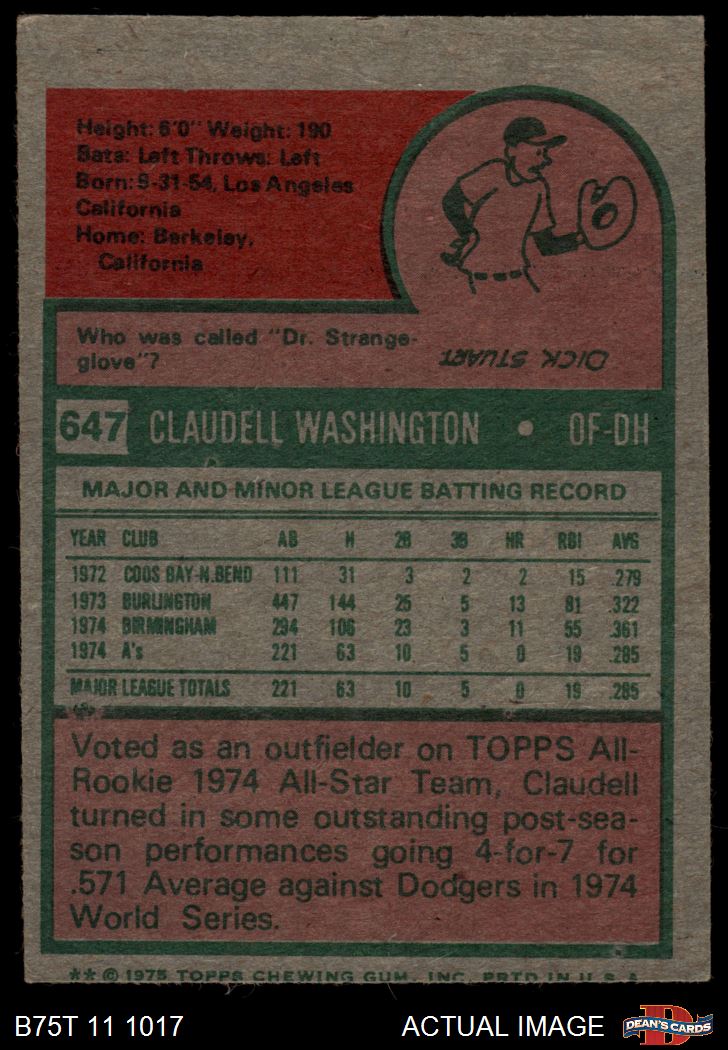 1975 Topps #647 Claudell Washington 4 - VG/EX