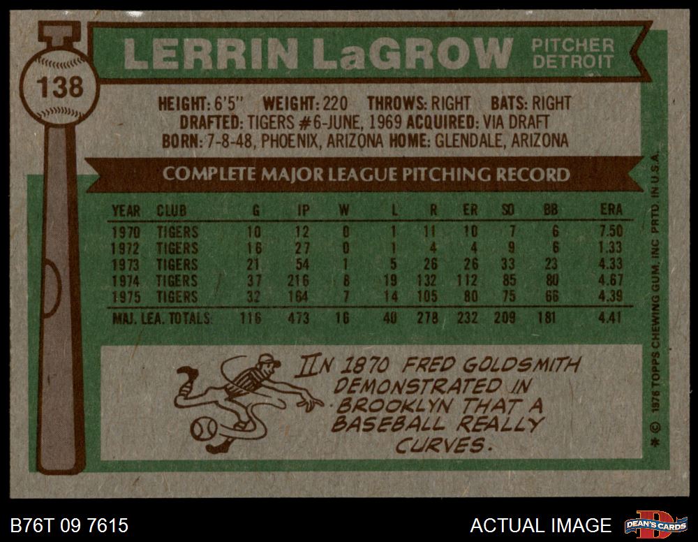 1976 Topps #138 Lerrin LaGrow 7 - NM