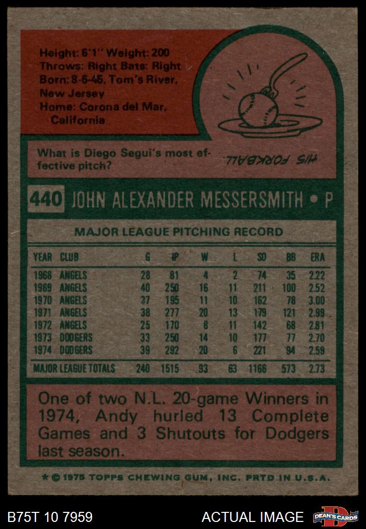 1975 Topps #440 Andy Messersmith 5 - EX