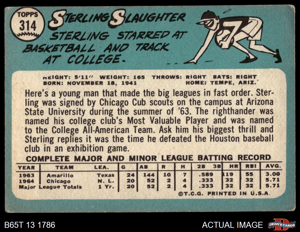 1965 Topps #314 Sterling Slaughter Front Thumbnail