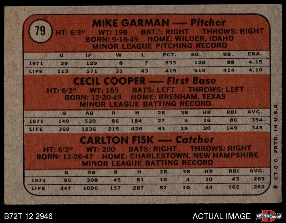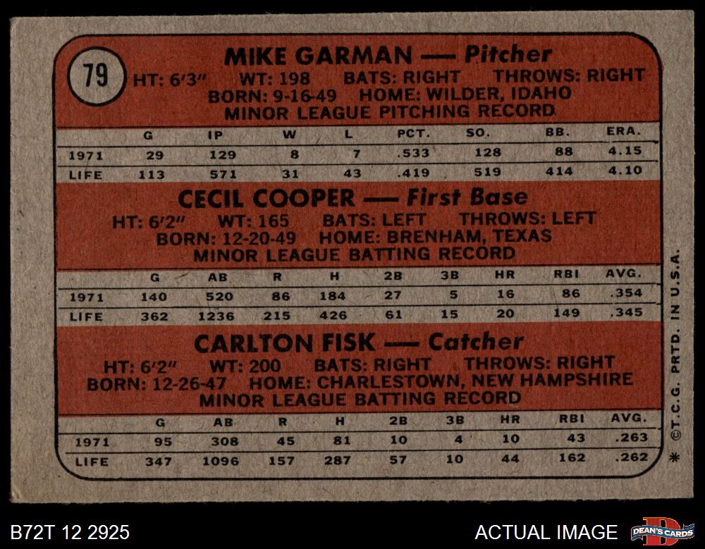 Carlton Fisk / Cecil Cooper / Mike Garman (20 available)
