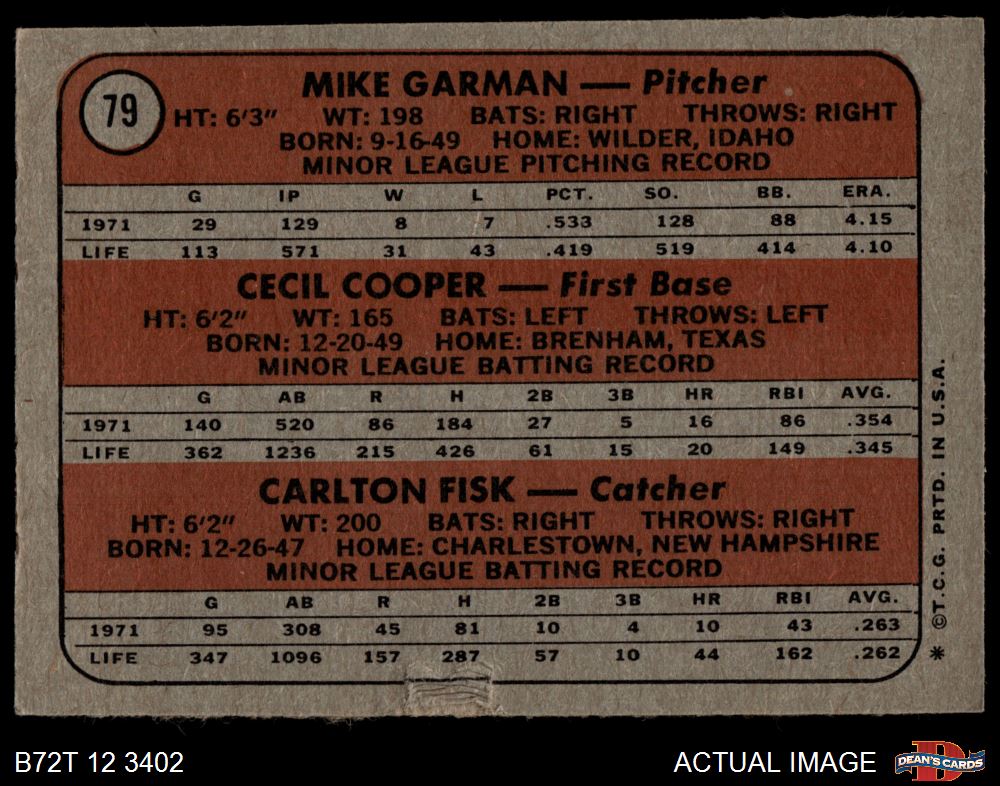 1972 Topps #79 - Carlton Fisk / Cecil Cooper / Mike Garman Red Sox Rookies 2 - GOOD