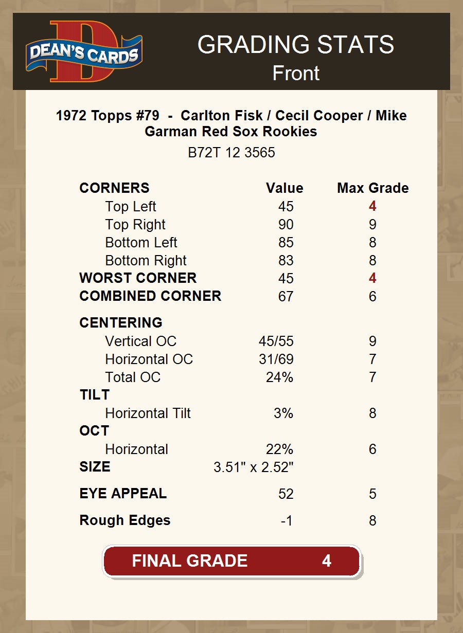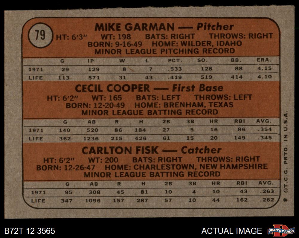 1972 Topps #79 - Carlton Fisk / Cecil Cooper / Mike Garman Red Sox Rookies 4 - VG/EX