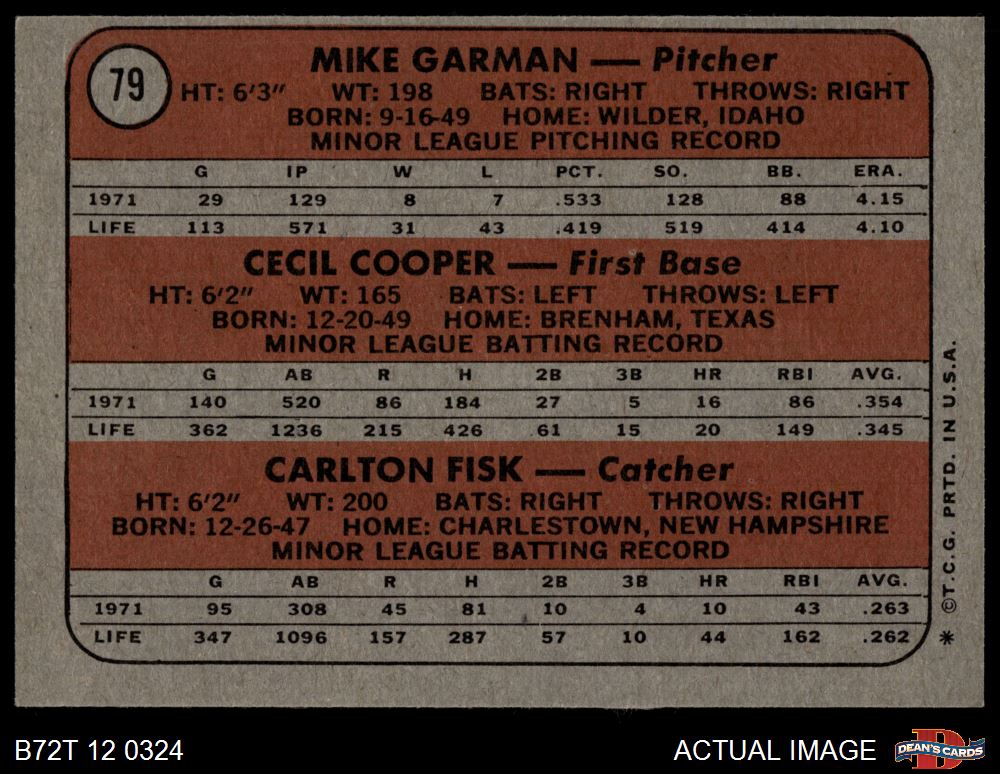 1972 Topps #79 - Carlton Fisk / Cecil Cooper / Mike Garman Red Sox Rookies 7 - NM