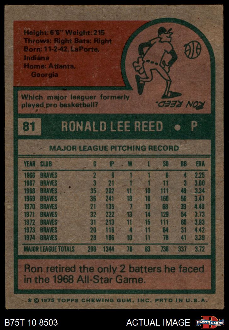 1975 Topps #81 Ron Reed 4.5 - VG/EX+