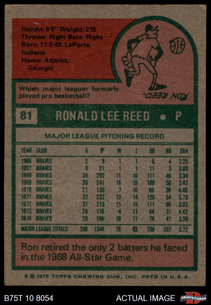 1975 Topps #81 Ron Reed 5.5 - EX+