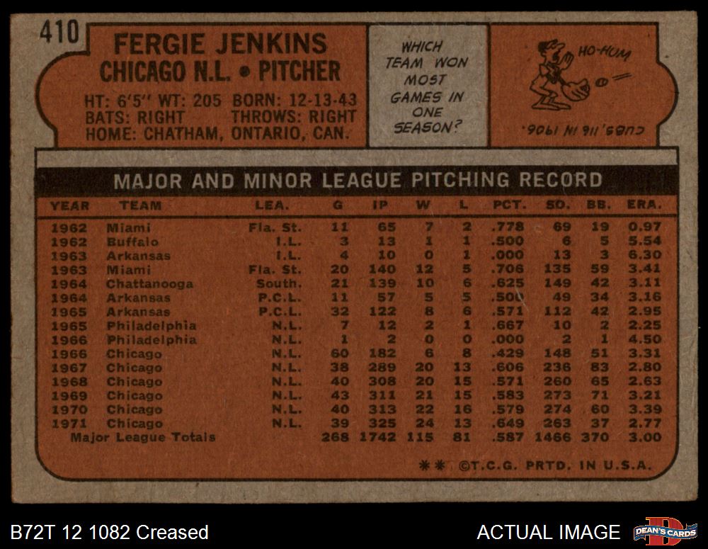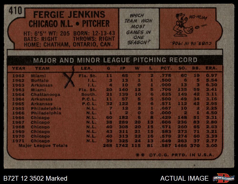 1972 Topps #410 Fergie Jenkins 1.5 - FAIR