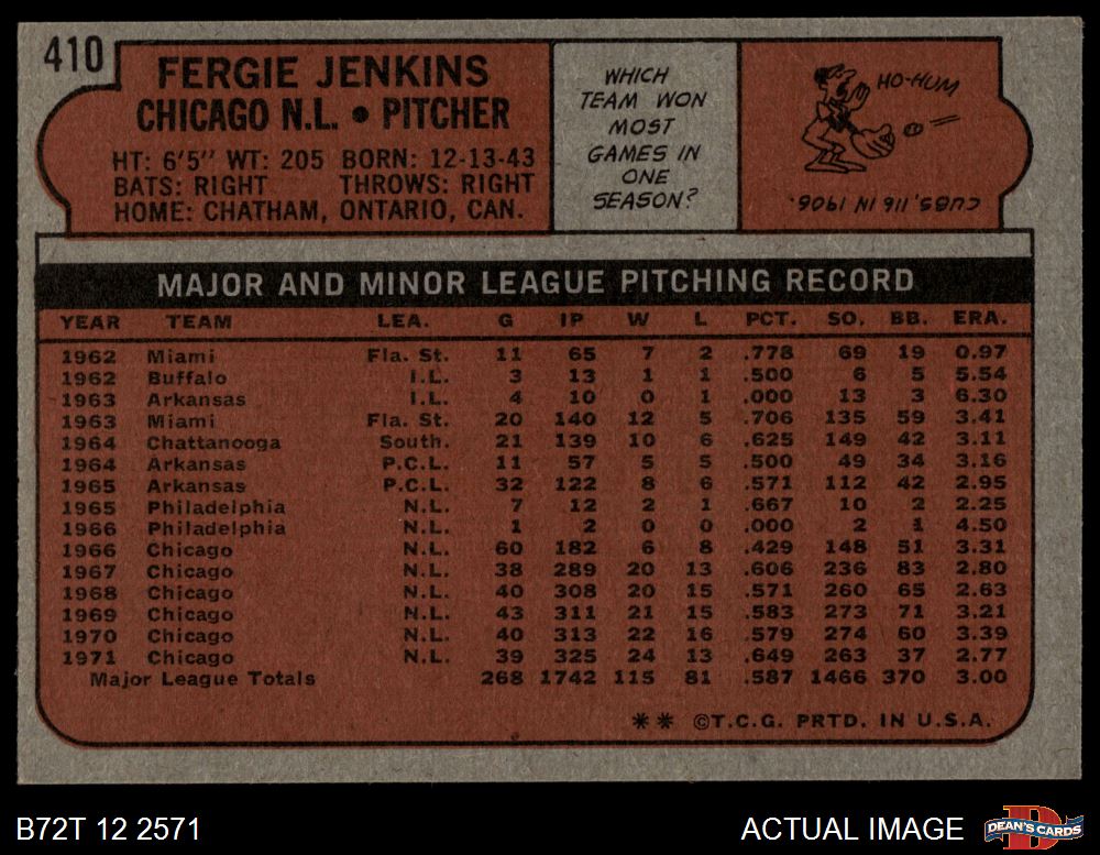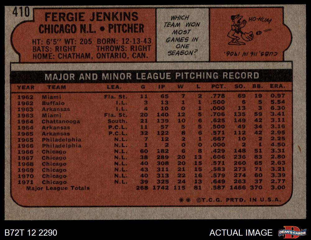 1972 Topps #410 Fergie Jenkins