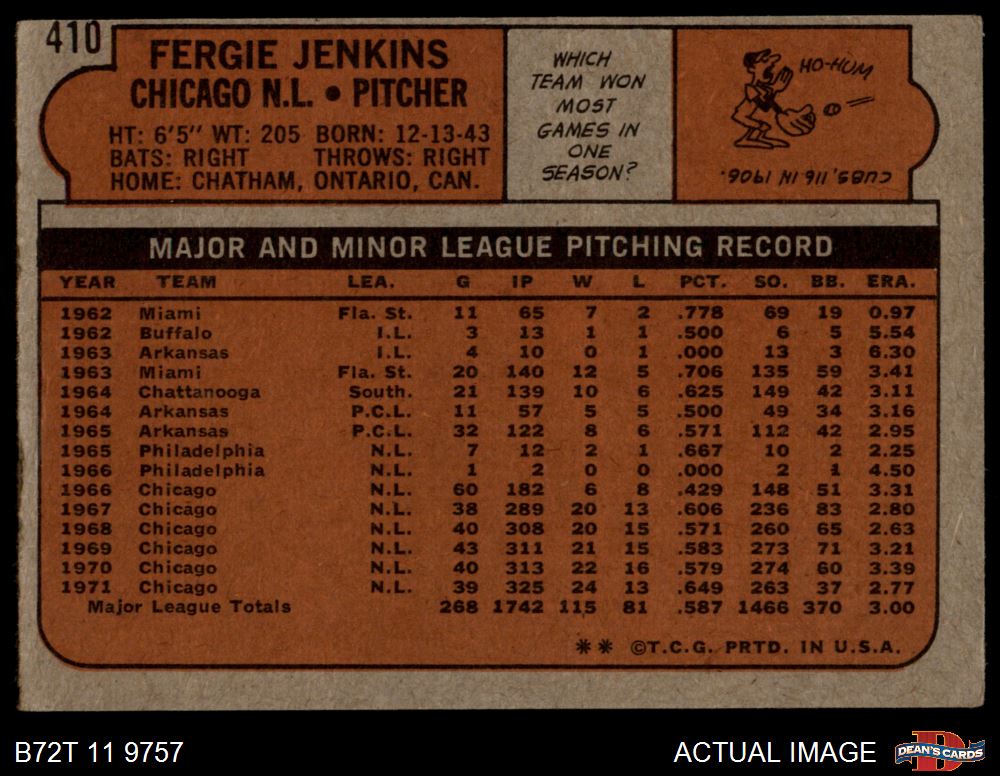 1972 Topps #410 Fergie Jenkins 2 - GOOD